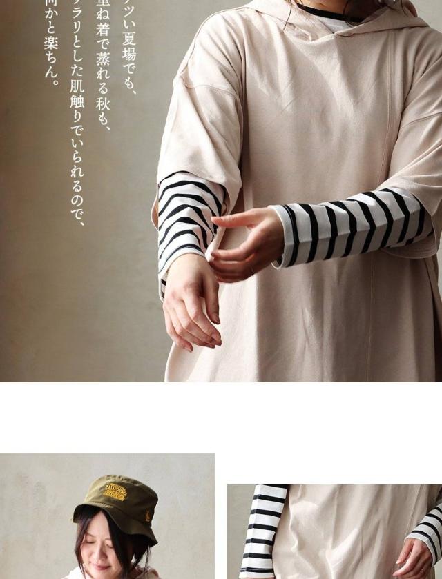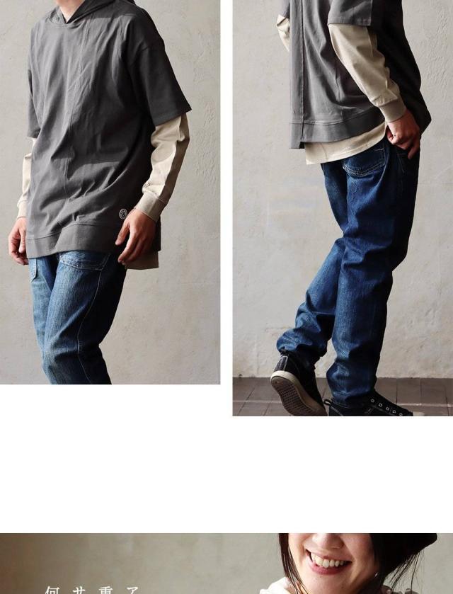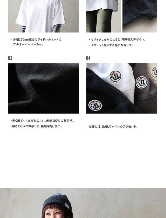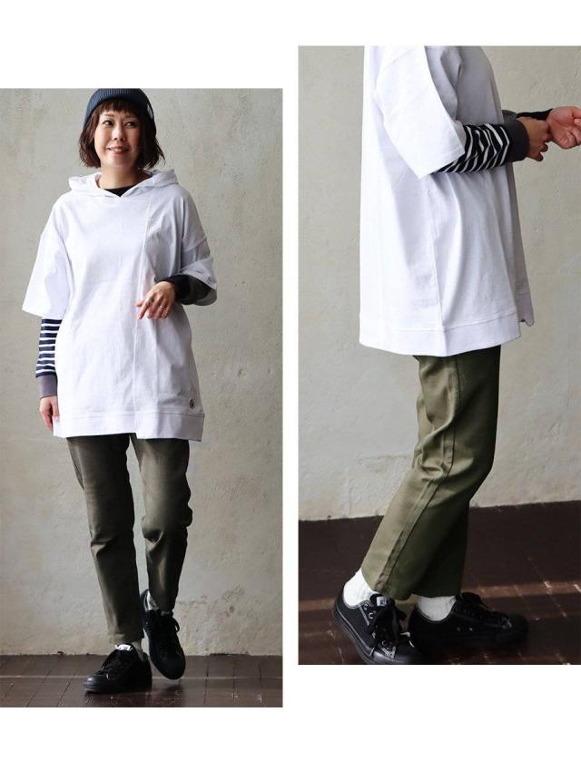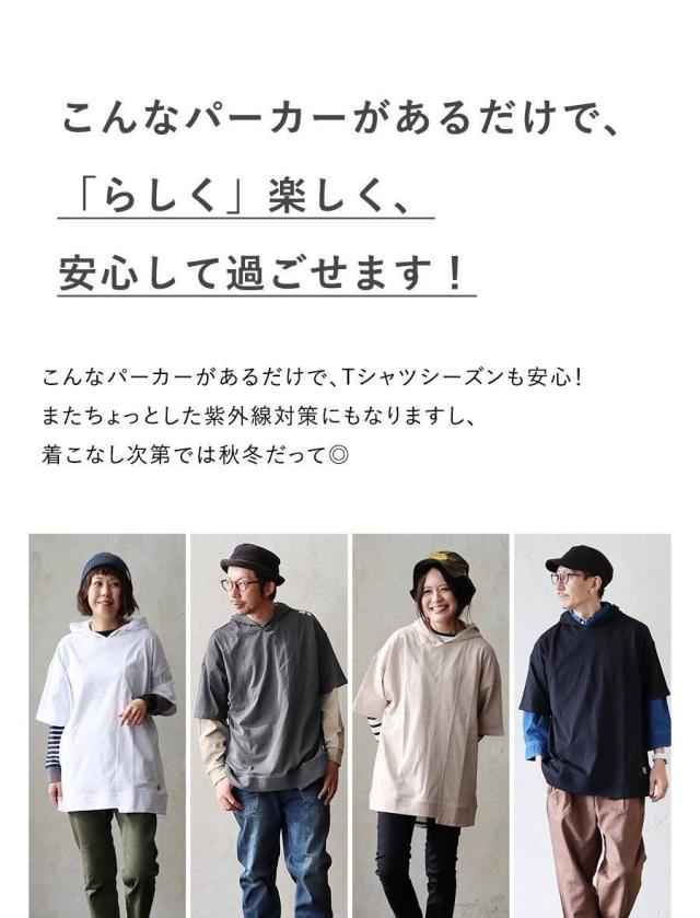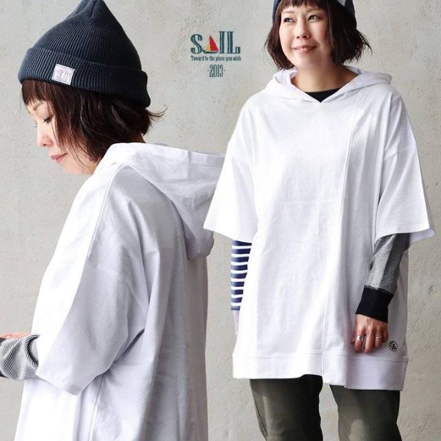 【メール便50】 パーカー 半袖 五分袖 メンズ レディース 夏 着痩せ ワイド 冷感 涼しい 綿100% USA コットン しっかり 丈夫 リブ 重ね着 切り替え 二の腕 お尻 カバー Tシャツパーカー カジュアル パティ SAIL セイル