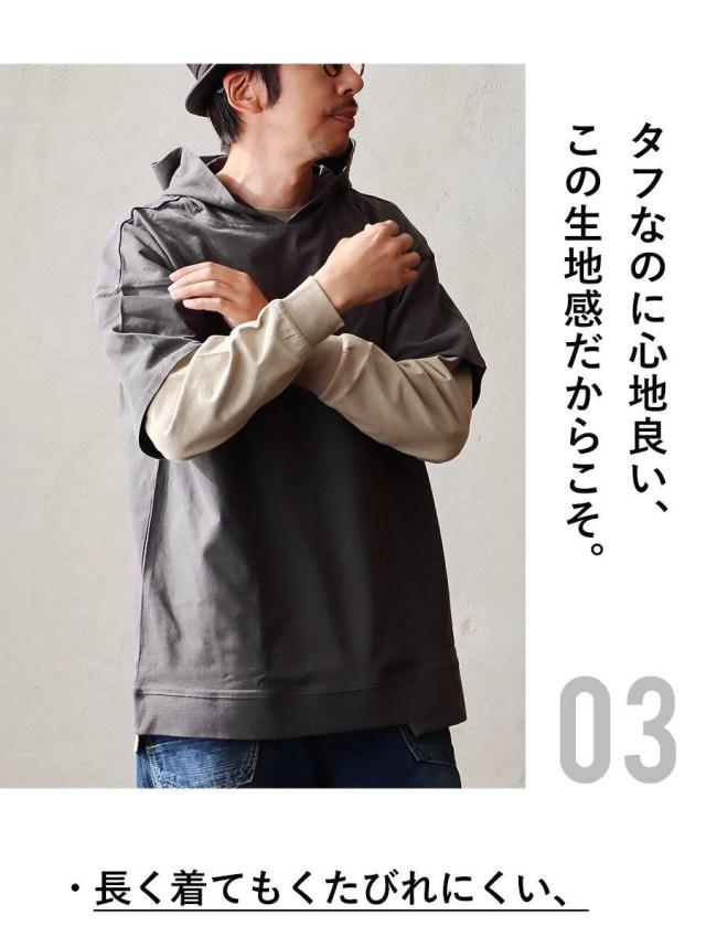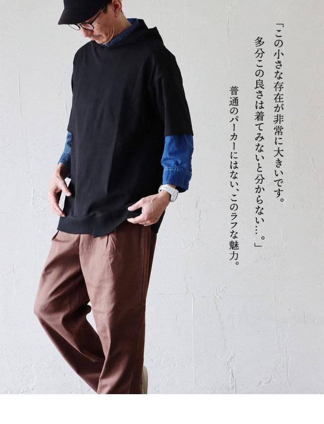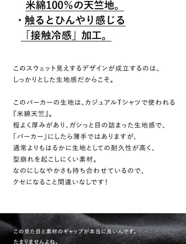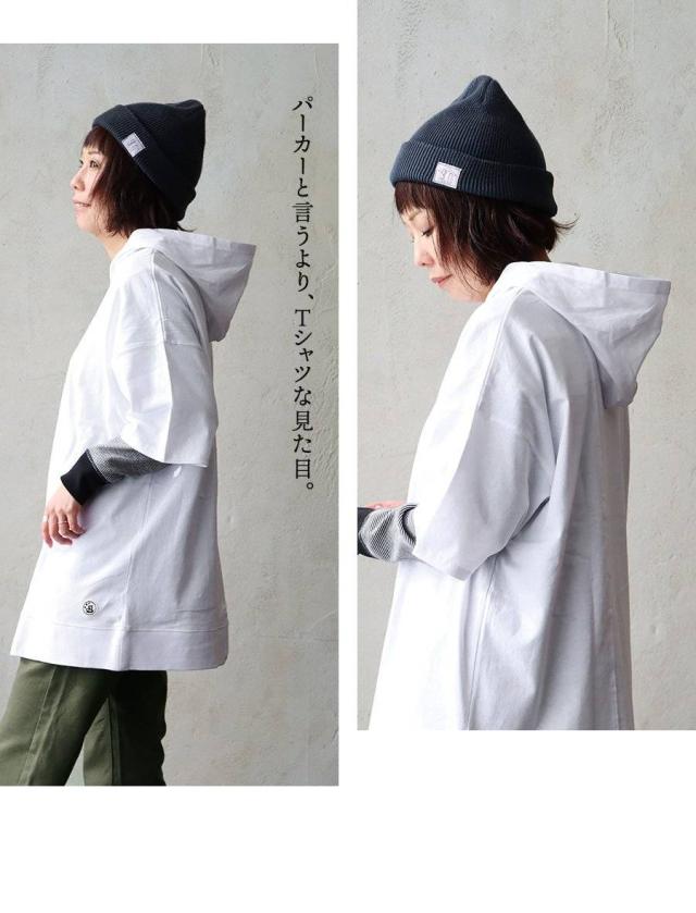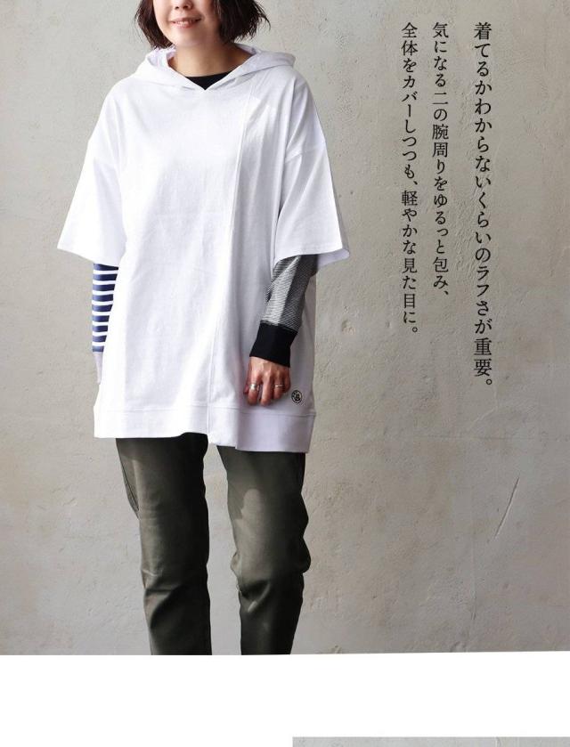 パーカー 半袖 五分袖 メンズ レディース 夏 着痩せ ワイド 冷感 涼しい 綿100% USA コットン しっかり 丈夫 リブ 重ね着 切り替え 二の腕 お尻 カバー Tシャツパーカー カジュアル パティ