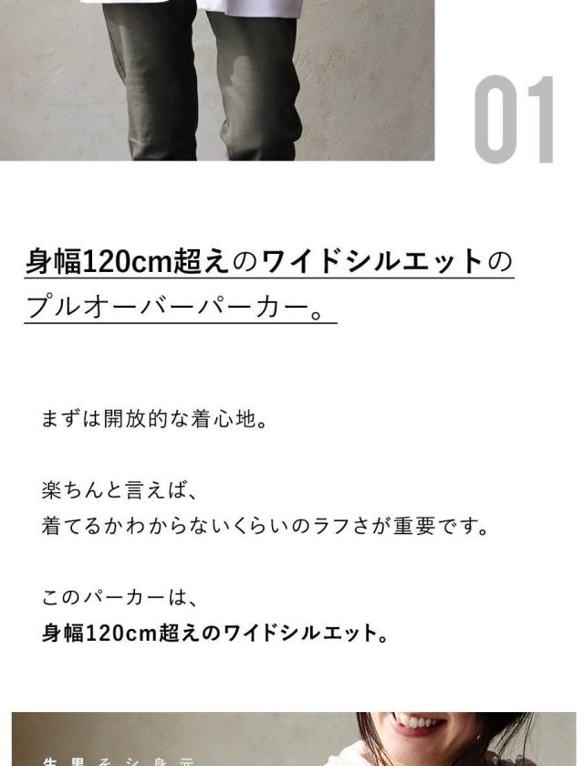 ・身幅120cm超えのワイドシルエットのプルオーバーパーカー。