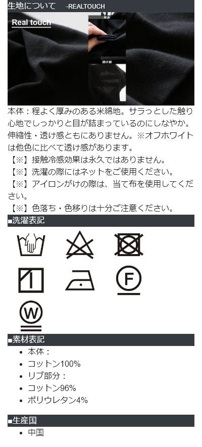 [素材]本体:コットン100% リブ部分:コットン96% ポリウレタン4%