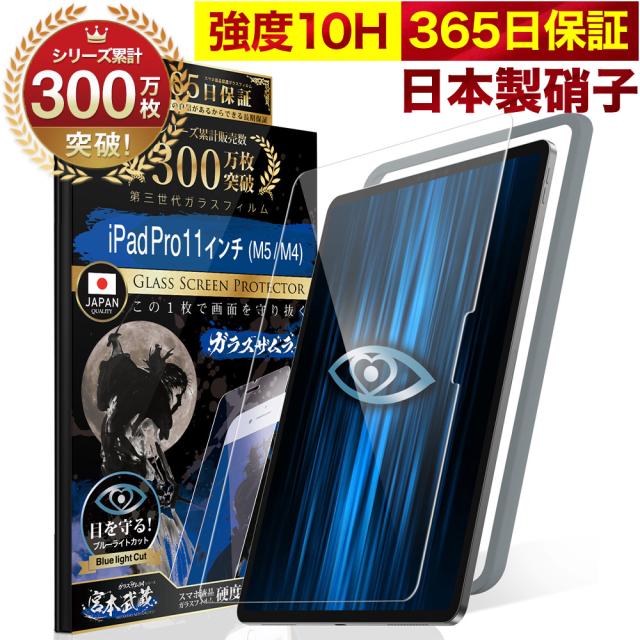 iPad Pro 11インチ ガラスフィルム 保護フィルム フィルム ブルーライトカット 第6世代 (2025) 第5世代 (2024) 11inch 10H ガラスザムライ 液晶保護フィルム OVER`s オーバーズ TP01