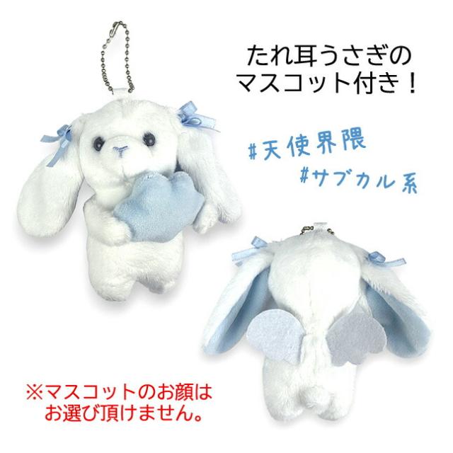 天使の羽がかわいいたれ耳うさぎのマスコット付きリュック。
