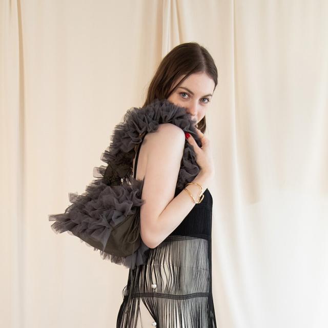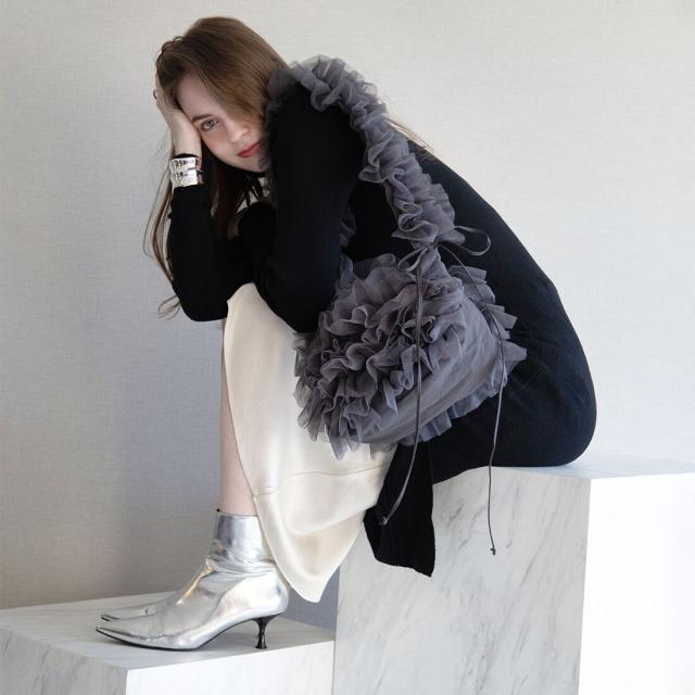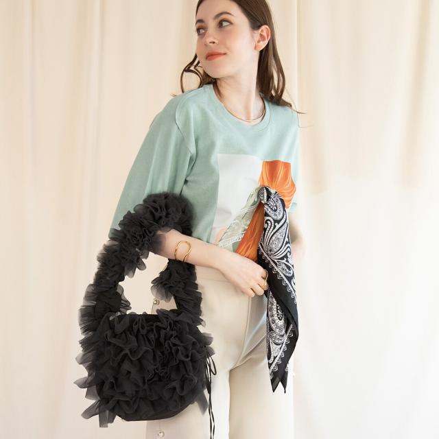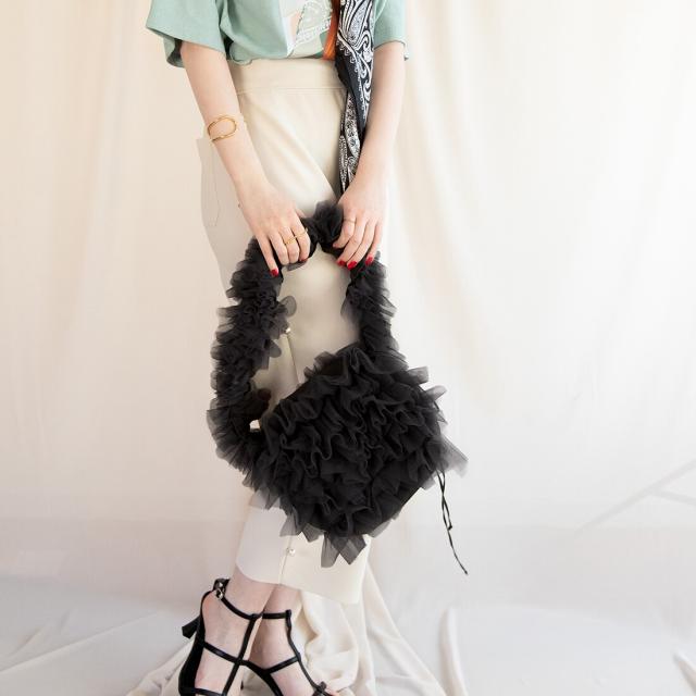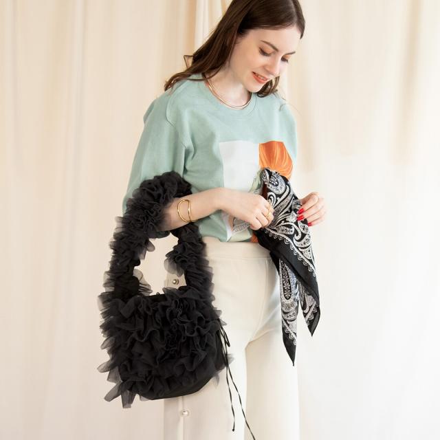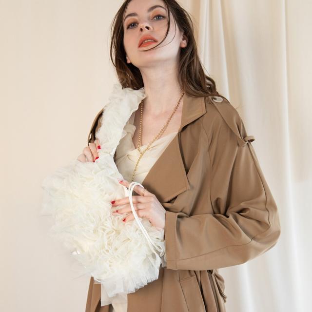 今年大注目のチュール生地が、可愛らしさを際立たせるショルダーバッグに仕上がりました。