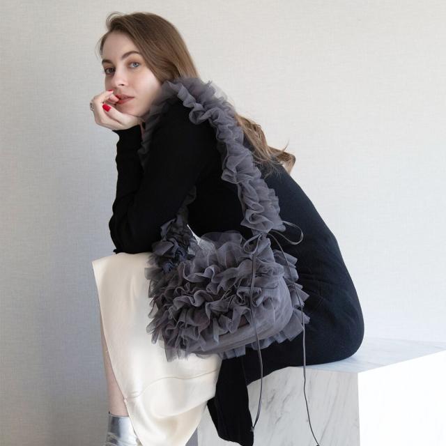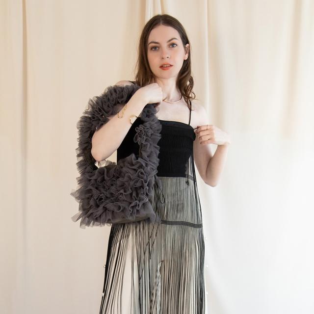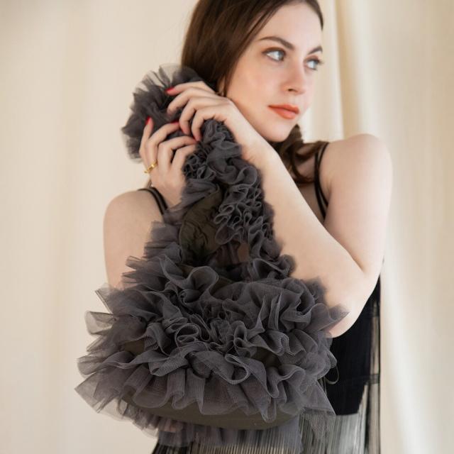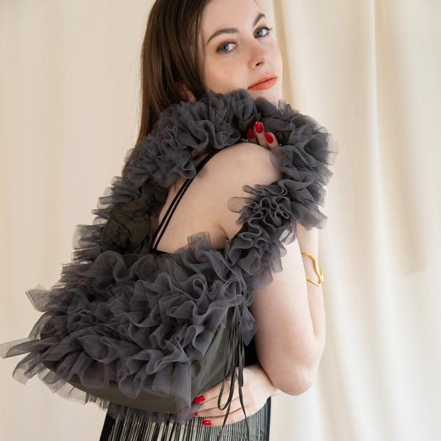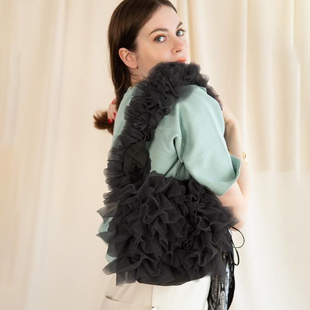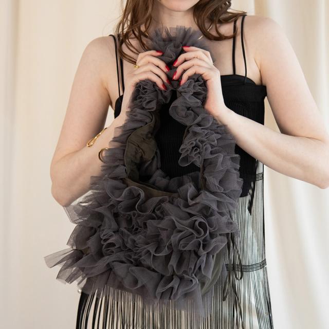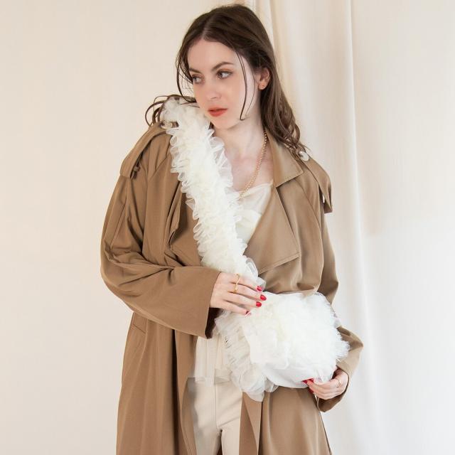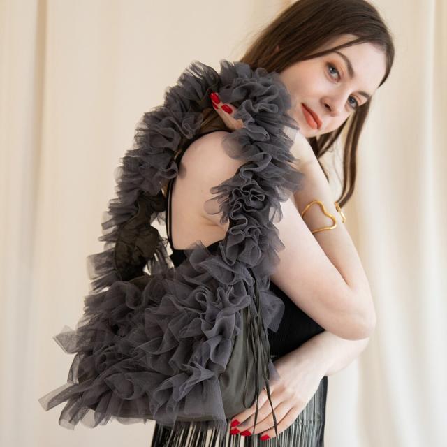 【長さ調節可能】ロマンチックチュールフリルショルダーバッグ