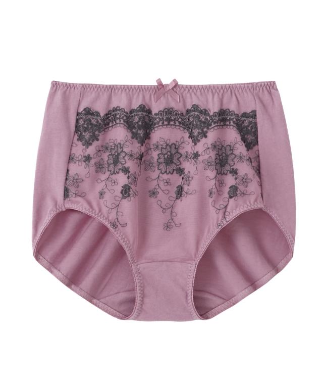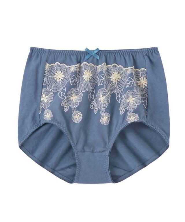 - 綿100%で深ばきだと地味なものが多いが、このショーツはレースが立体的でとっても綺麗。お気に入りになり、色違いで5枚目の購入です。