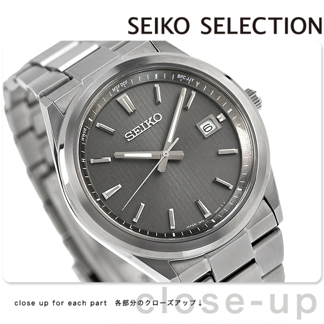 正規品 7年保証キャンペーン 送料無料 セイコーセレクション Sシリーズ ステンレス製 日本製 メンズ 腕時計 SBTM347 SEIKO SELECTION Premium アナログ グレー ◆軽快な装いのフォルムが特徴的な、ワンランク上のソーラー電波モデルが登場。細縁のすっきりとしたベゼルと、エッジを組み合わせたソリッドな形状のケースデザイン、中留を無垢にしたメタルブレスレットが、ワンランク上を感じさせます。異なる形状のインデックス、「SEIKO」、カレンダー枠を立体パーツにすることで、堂々としたデザインとなっております。ケース、メタルブレスレットにはダイヤシールドを施すことで、日常使いの擦り傷、小傷から時計本来の美しい輝きや、きれいな仕上げを守ります。スーツにも合せやすいシャドーストライプ柄の印刷を組み合わせたダイヤルにすることで、すっきりとした印象を与えます。 発売日:2024年5月発売