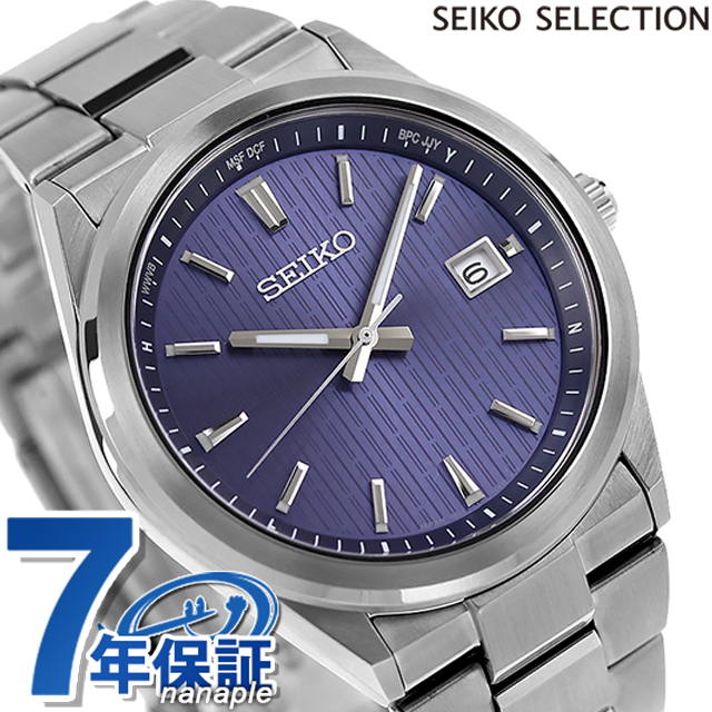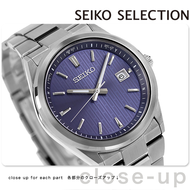 正規品 7年保証キャンペーン 送料無料 セイコーセレクション Sシリーズ ステンレス製 日本製 メンズ 腕時計 SBTM349 SEIKO SELECTION Premium アナログ ブルー ◆軽快な装いのフォルムが特徴的な、ワンランク上のソーラー電波モデルが登場。細縁のすっきりとしたベゼルと、エッジを組み合わせたソリッドな形状のケースデザイン、中留を無垢にしたメタルブレスレットが、ワンランク上を感じさせます。異なる形状のインデックス、「SEIKO」、カレンダー枠を立体パーツにすることで、堂々としたデザインとなっております。ケース、メタルブレスレットにはダイヤシールドを施すことで、日常使いの擦り傷、小傷から時計本来の美しい輝きや、きれいな仕上げを守ります。スーツにも合せやすいシャドーストライプ柄の印刷を組み合わせたダイヤルにすることで、すっきりとした印象を与えます。 発売日:2024年5月発売