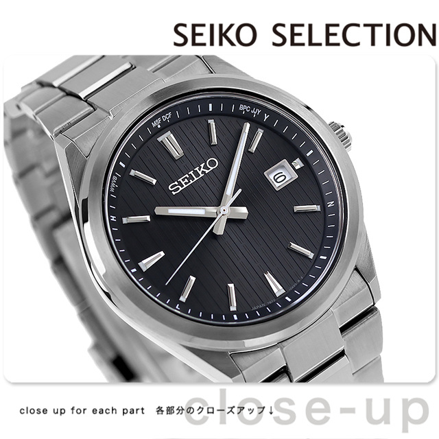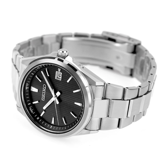 正規品 7年保証キャンペーン 送料無料 セイコーセレクション Sシリーズ ステンレス製 日本製 メンズ 腕時計 SBTM351 SEIKO SELECTION Premium アナログ ブラック 黒 ◆軽快な装いのフォルムが特徴的な、ワンランク上のソーラー電波モデルが登場。細縁のすっきりとしたベゼルと、エッジを組み合わせたソリッドな形状のケースデザイン、中留を無垢にしたメタルブレスレットが、ワンランク上を感じさせます。異なる形状のインデックス、「SEIKO」、カレンダー枠を立体パーツにすることで、堂々としたデザインとなっております。ケース、メタルブレスレットにはダイヤシールドを施すことで、日常使いの擦り傷、小傷から時計本来の美しい輝きや、きれいな仕上げを守ります。スーツにも合せやすいシャドーストライプ柄の印刷を組み合わせたダイヤルにすることで、すっきりとした印象を与えます。 発売日:2024年5月発売