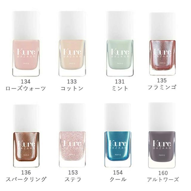 爪を傷めずおしゃれを楽しめる エコナチュラルで美しい速乾ネイル Kure BAZAAR ネイルカラー 10ml フランスを始め、ヨーロッパ、アメリカそして日本で話題となった " キュアバザー(Kure BAZAAR) " ブランドのコンセプトは「ナチュラルとファッション性の共存」。エコナチュラルな成分を配合し爪にやさしく、そして何よりも目を見張る美しいカラーバリエーションです。 1度塗りで鮮やかな発色、色持ち、ツヤはもちろん、速乾性にも優れているのでネイルが面倒なんてもう思わない! どんなファッションにもリンクするネイルポリッシュを自分へのご褒美にいかがでしょうか。 | |
