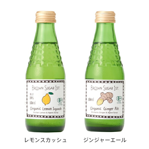 ブラウンシュガーファースト 有機ドリンク 180ml レモンスカッシュ/ジンジャーエール [Brown Sugar 1st BS1ST 有機JAS オーガニック 炭酸 ソーダ] ts1031