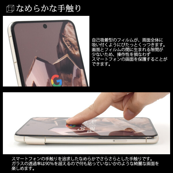 液晶画面全体を守る Google Pixel 8 Pro 専用の液晶保護ガラスフィルムです。