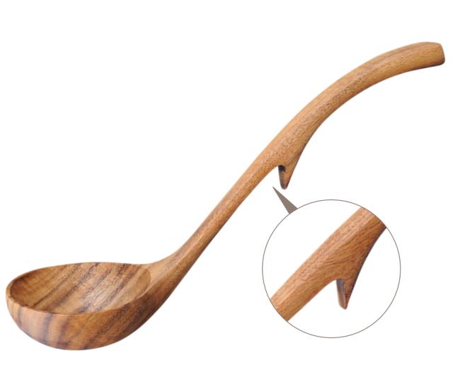 お鍋のフチに引っ掛けられる天然木のお玉