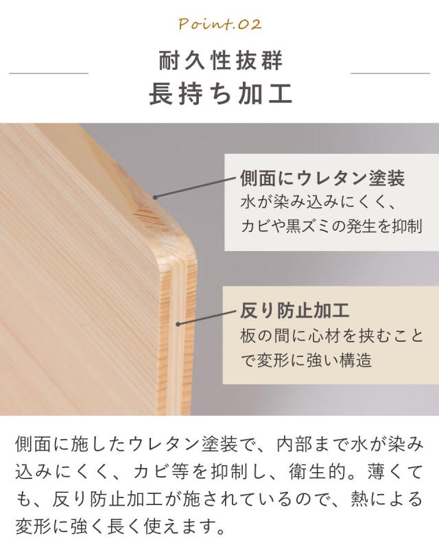 | 材質 | 本体:ひのき 側面塗装:ウレタン樹脂塗装 |