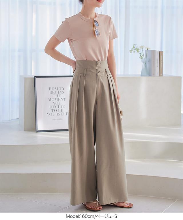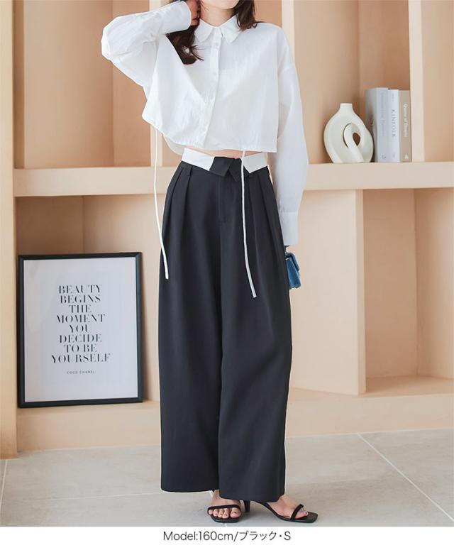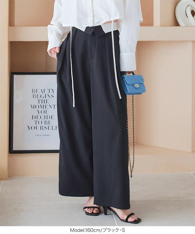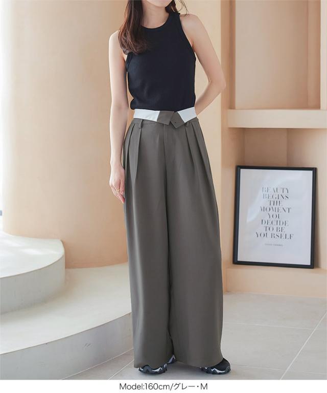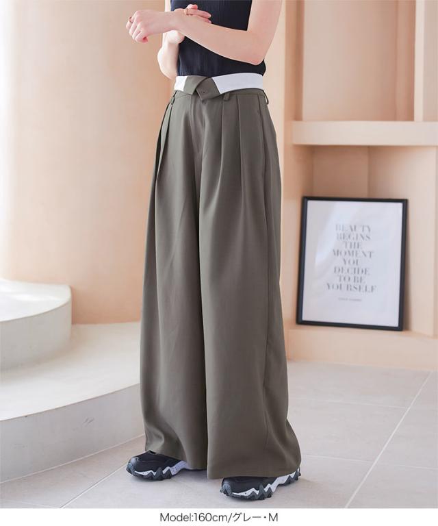 春新作 2wayウエストデザインワイドパンツ M4055 入荷済 レディース 30代 40代 2way ウエストデザイン デザイン ワイドパンツ スラックス ハイウエスト ローウエスト トレンド 2024 フルレングス ロングパンツ