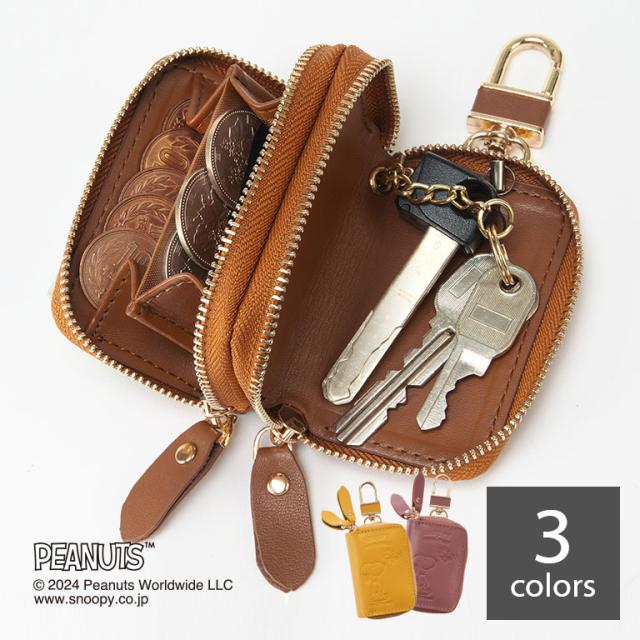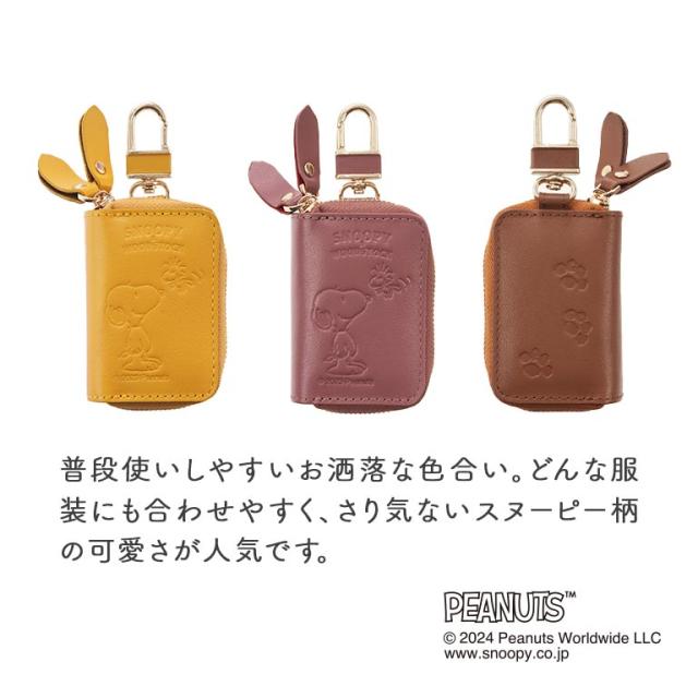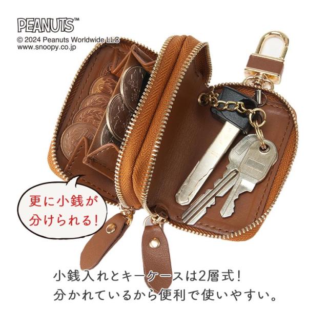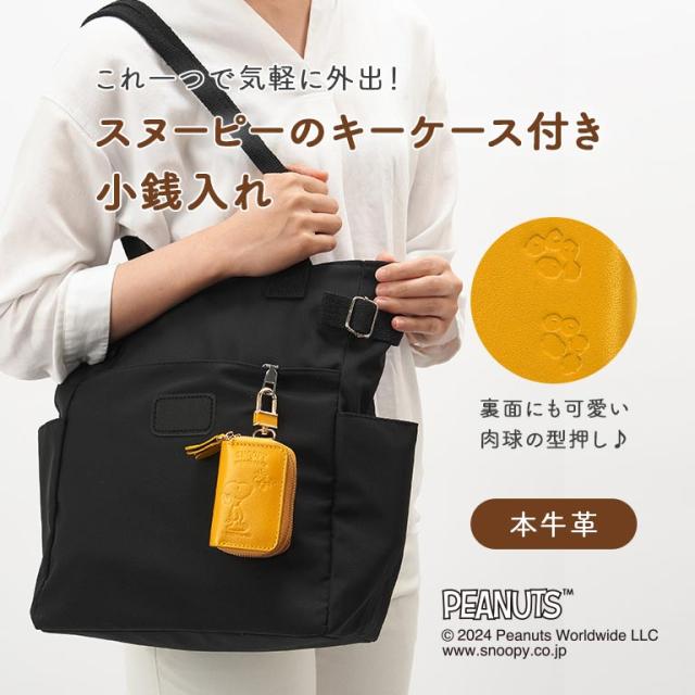 スヌーピー 小銭も入るキーケース 正規ライセンス品 SNOOPY ピーナッツ PEANUTS ウッドストック グッズ 本革 牛革 収納 お金 小銭 財布 キーケース