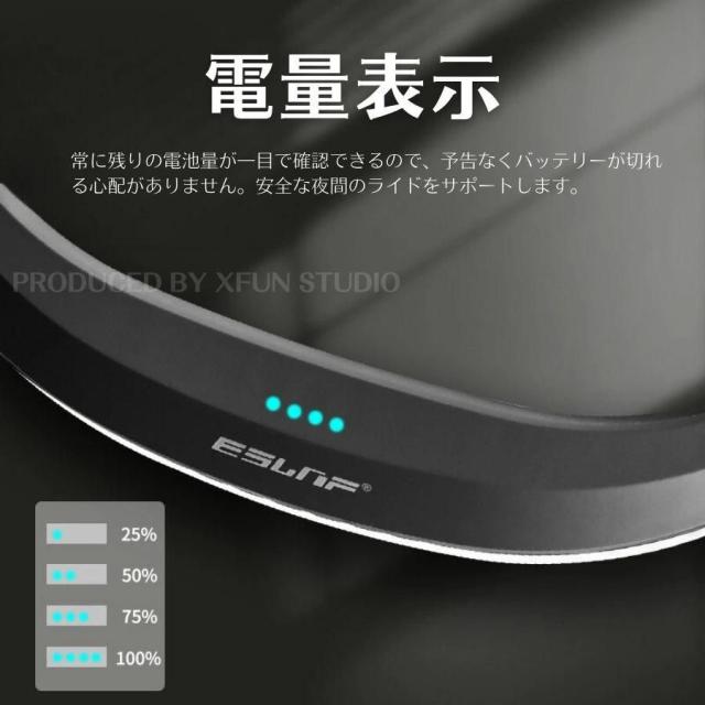 常に残りの電池量が一目で確認できるので、予告なくバッテリーが切れる心配がありません。安全な夜間のライドをサポートします。