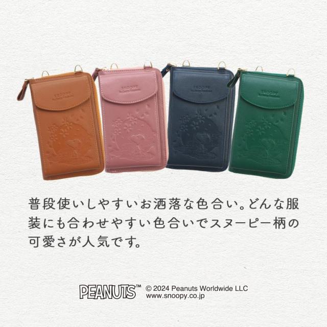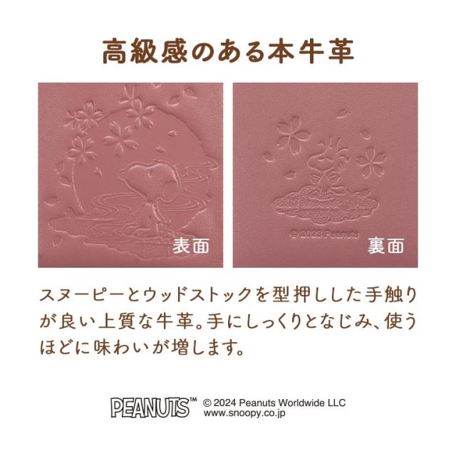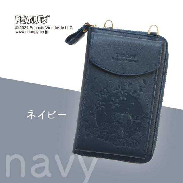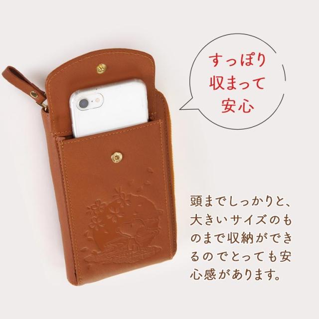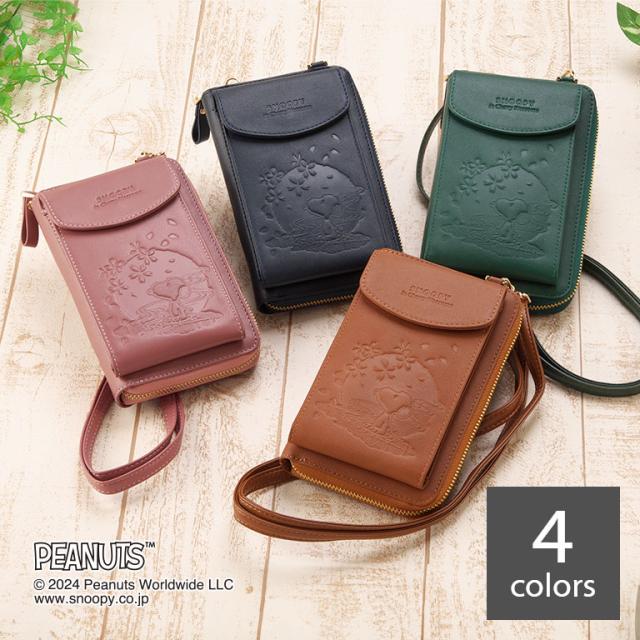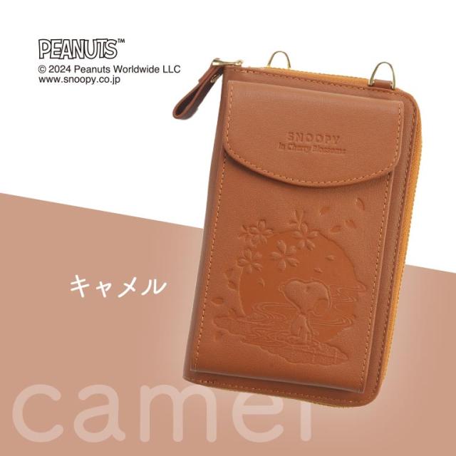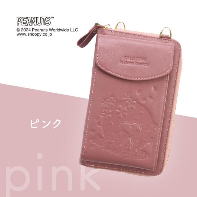 【桜柄】スヌーピー お財布機能付き スマホショルダー 正規ライセンス品 SNOOPY ピーナッツ PEANUTS ウッドストック グッズ スマホ ショルダー ショルダーバッグ 財布 お財布 本革 牛革