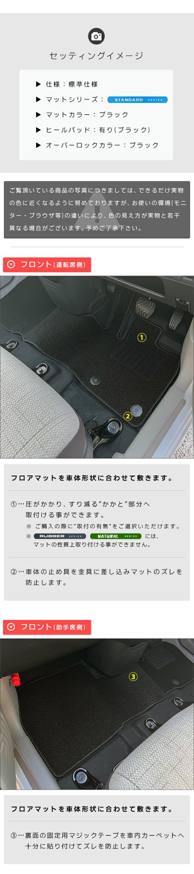 | 商品構成 | フロント用マット 1枚 リア用マット 1枚 ラゲッジスペース用マット 2枚 ※ お車の”年式・仕様”によりマット形状が異なります。ご購入の際は、適合する項目をご選択ください。 |