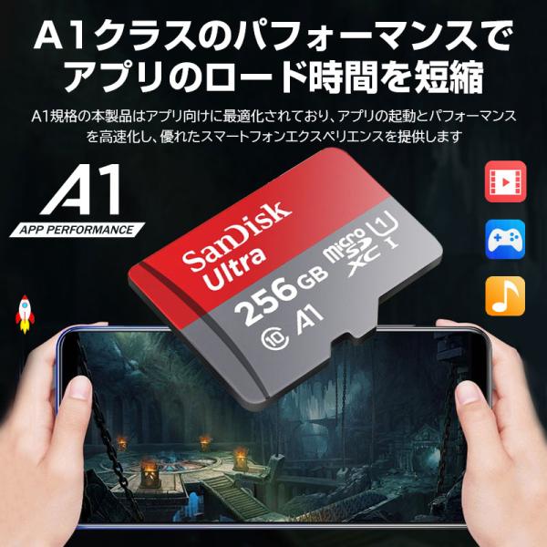 アプリに最適化されたサンディスク ウルトラ microSD カードはアプリケーションパフォーマンスクラス1(A1)10 に対応しています。