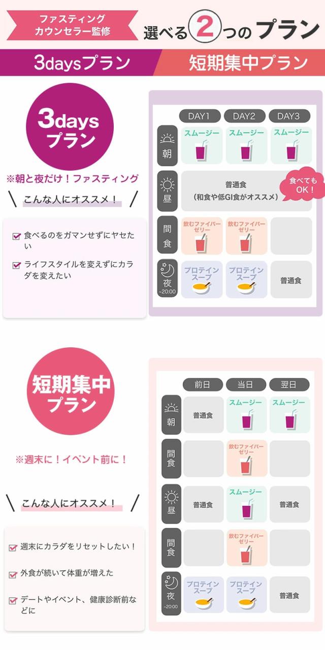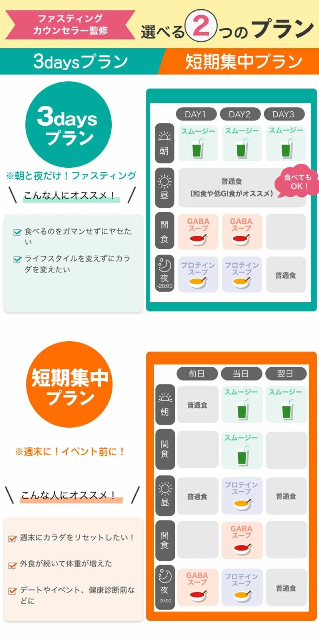 また、2種類のプランから選べ、自分のペースで無理なく始めることができる新しいファスティングです。
