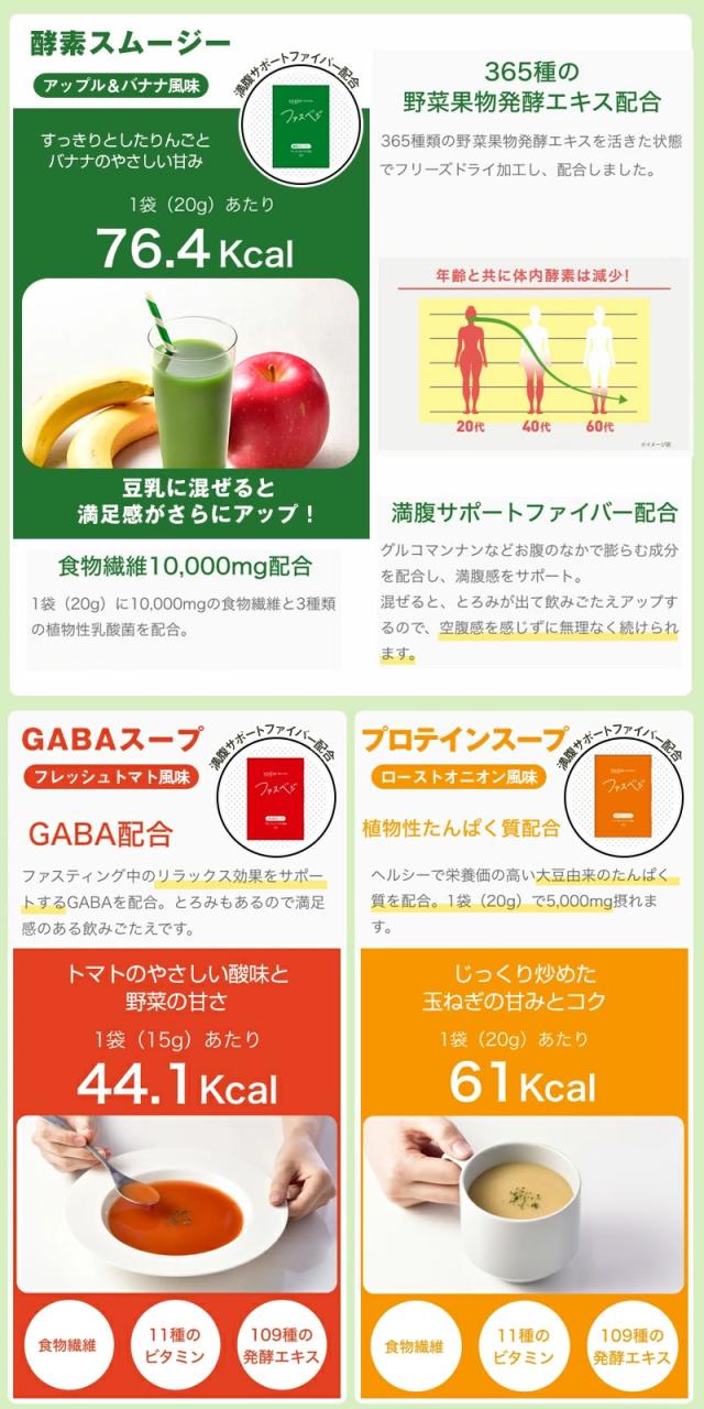 ファスティングカウンセラー監修のもと必要な栄養素はしっかり補い、3種類の味で飽きずに美味しく続けられる商品を開発いたしました。
