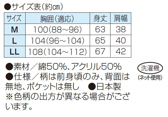 ●仕様/柄は前身頃のみ、背面は無地、ポケットは無し