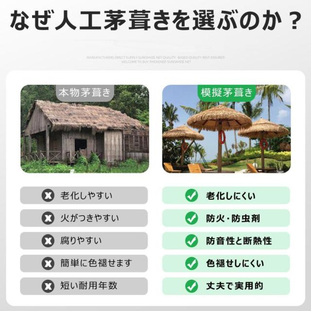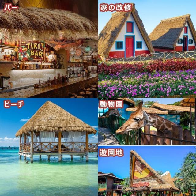 【多目的】: サッチロールは多用途で、さまざまな場所や環境で使用できます。 パティオの屋根、ティキ小屋、ガゼボ、トロピカルをテーマにしたバーやレストランなどの屋外または屋内の装飾によく使われています。