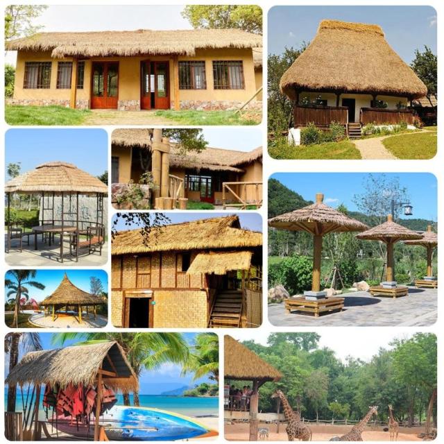 【人工茅葺き屋根】:人工サッチは合成PE素材でできており、防雨性、難燃性、良好な自然光があり、クリアでリアルなラインを備えています。 全体として、模擬茅葺き屋根は、住宅および商業ビルに見た目が美しく安全な屋根のオプションを提供します。