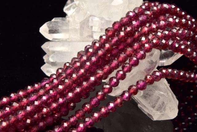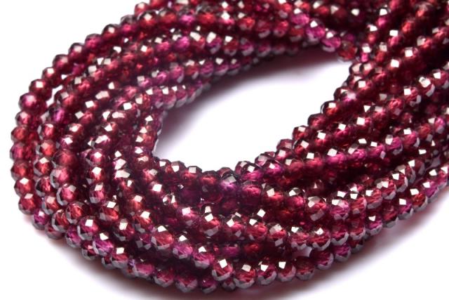 きれいな紫色◇インド産 ロードライトガーネット 3mm 64面カット 1連(約38cm) 恋愛運_RG623-3