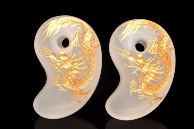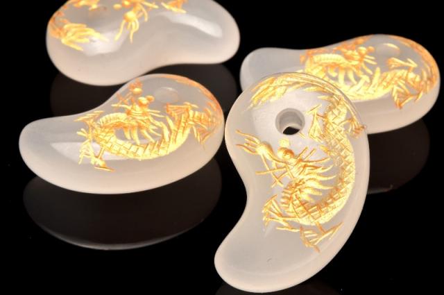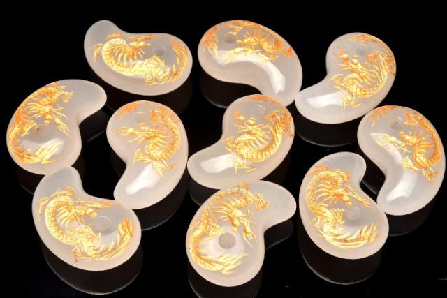 五爪皇帝龍 白玉(ホワイトネフライト) 31x20mm 金彫青龍 勾玉 ルース 1個売り 金運・仕事運・厄除け_PRG1907