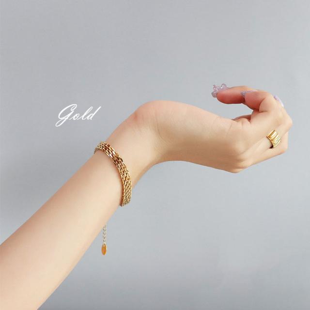 変色しにくい、変形しにくい、傷が付けにくい、 金属アレルギーに強いステンレスのブレスレットです。 長さ調整可能なアジャスターが付き、好みに合わせてつけることができます。 日常使いからフォーマルな場面まで様々な場面で活躍してくれます。 |