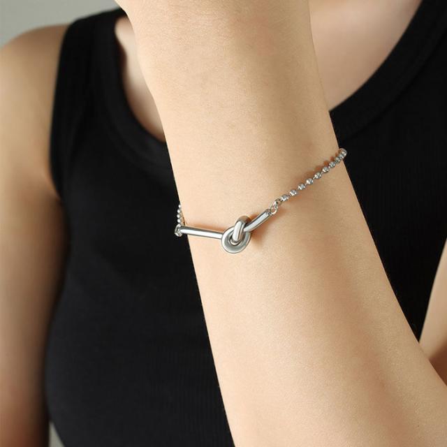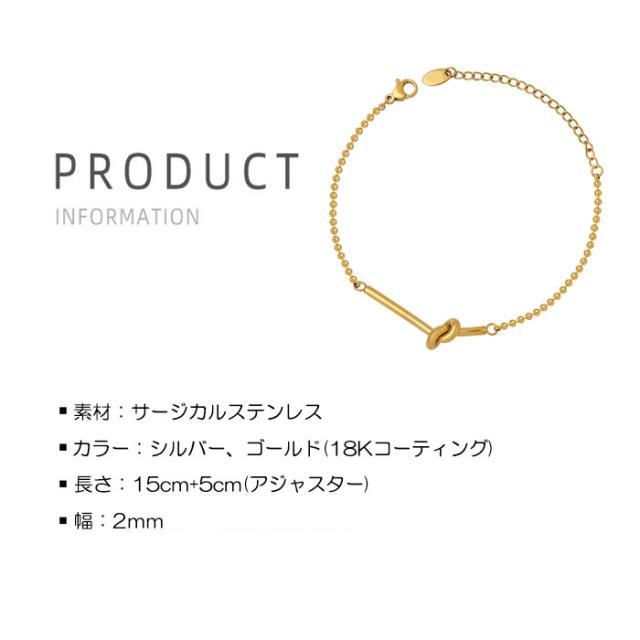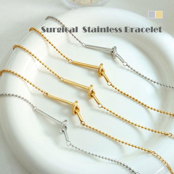 ブレスレット 結び目 ボールチェーン ステンレス ブレス 15cm+5cm ジュエリー アクセサリー ニッケルフリー 金属アレルギー対応