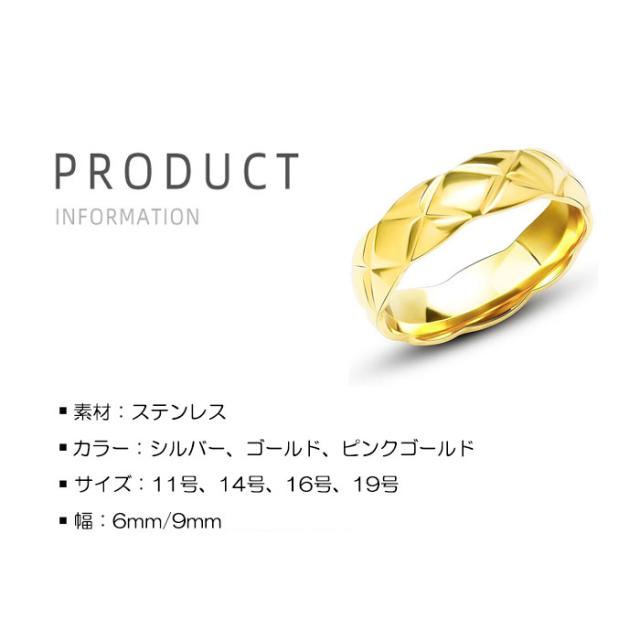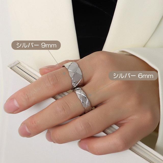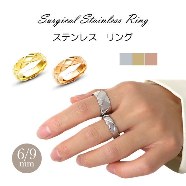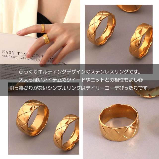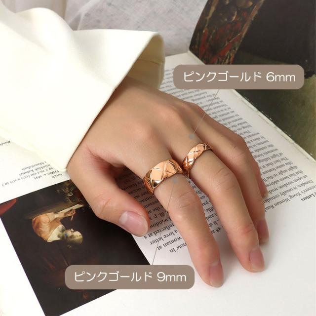 リング 指輪 6mm 9mm キルティング ステンレスリング ペアリング 太幅 幅広 k18コーティング 低アレルギー デザイン おしゃれ