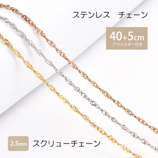 スクリューチェーン 2.5mm 40cm 45cm チェーン ステンレス ネックレス ステンレスチェーン スクリュー 低アレルギー 男女兼用 ハンドメイド 素材