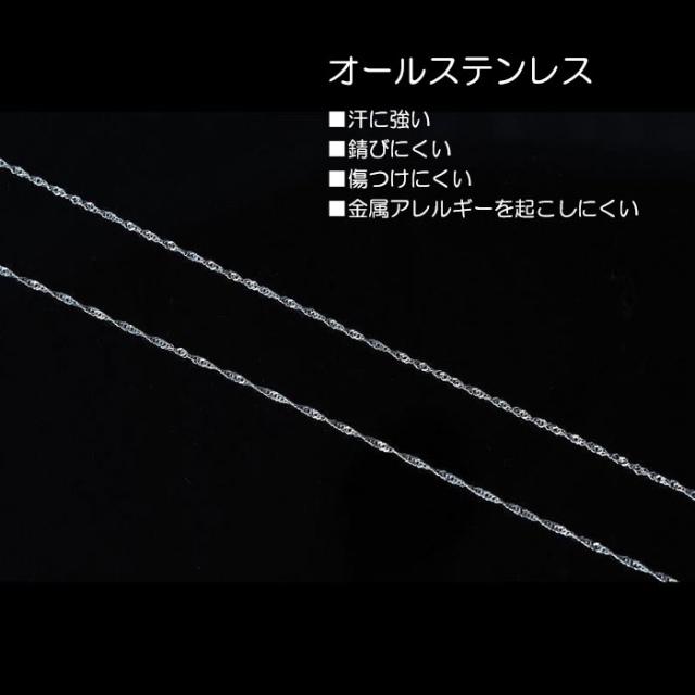 変色しにくい、変形しにくい、傷が付けにくい、 金属アレルギーに強いステンレスのチェーンです。 長さ調整可能なアジャスターが付き、好みに合わせてつけることができます。 日常使いからフォーマルな場面まで様々な場面で活躍してくれます。 |