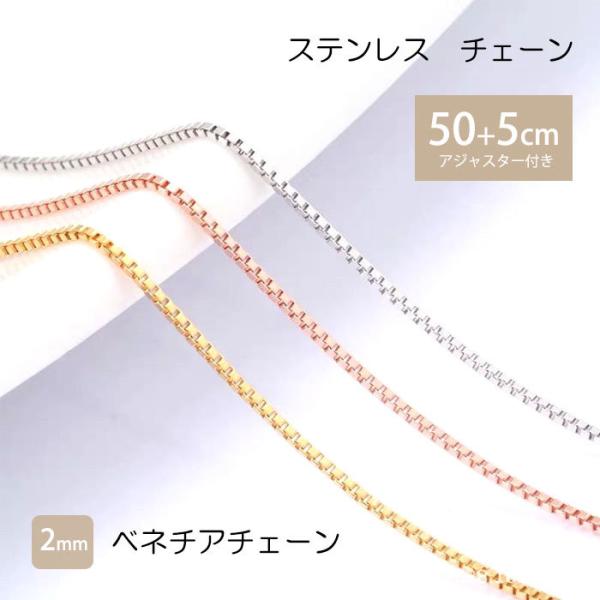 ベネチアチェーン 2mm 50cm 55cm ステンレス ネックレス チェーン ステンレスチェーン アジャスター 低アレルギー 男女兼用 ハンドメイド 素材
