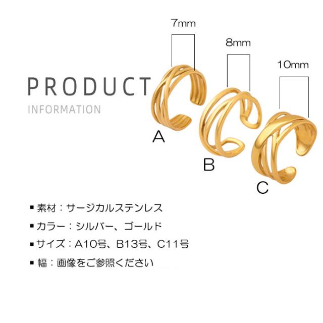 変色しにくい、変形しにくい、傷が付けにくい 金属アレルギーに強いステンレスの指輪です。 デザイン性のあるリング、ほかの人と差別化したい方におすすめです。 指を細く美しく見せるクロスラインのリングです。 日常使いからフォーマルな場面まで様々な場面で活躍してくれます。 |