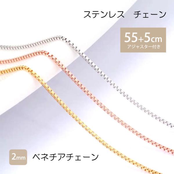 ベネチアチェーン 2mm 55cm 60cm ステンレス ネックレス チェーン ステンレスチェーン アジャスター 低アレルギー 男女兼用 ハンドメイド 素材