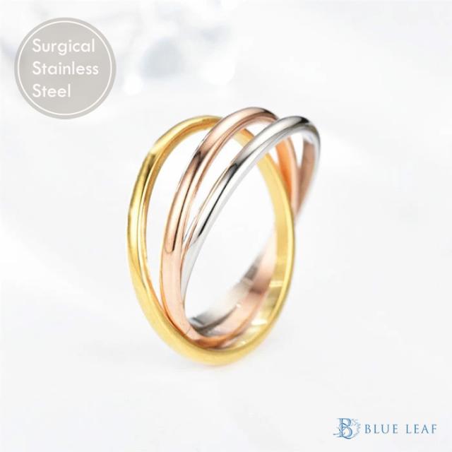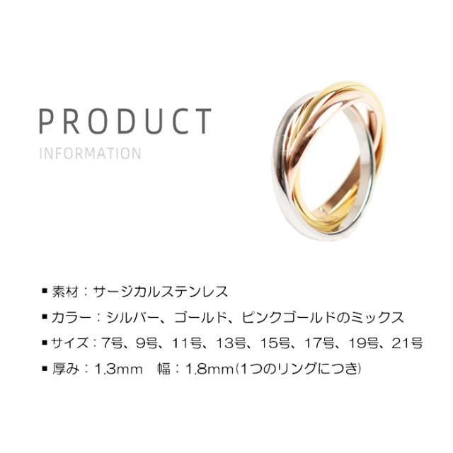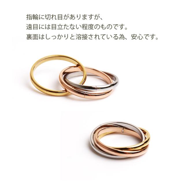 ステンレス リング 3連リング トリプル 銀色 金色 ピンクゴールドミックス 指輪 サージカルステンレス トリニティリング
