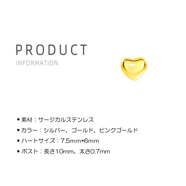 | サイズ | ハート横7.5mm、縦6mm、 ポスト長さ:10mm、ポスト太さ:0.7mm |