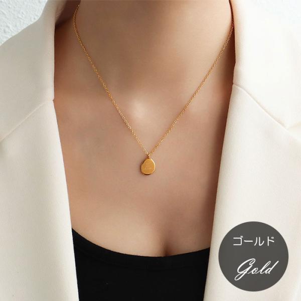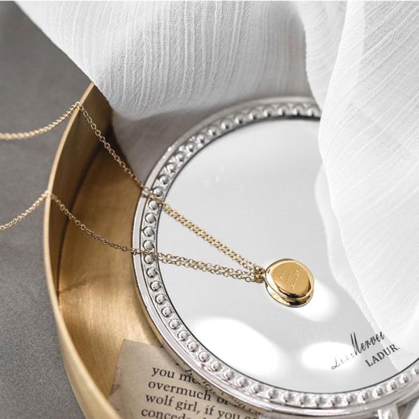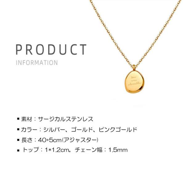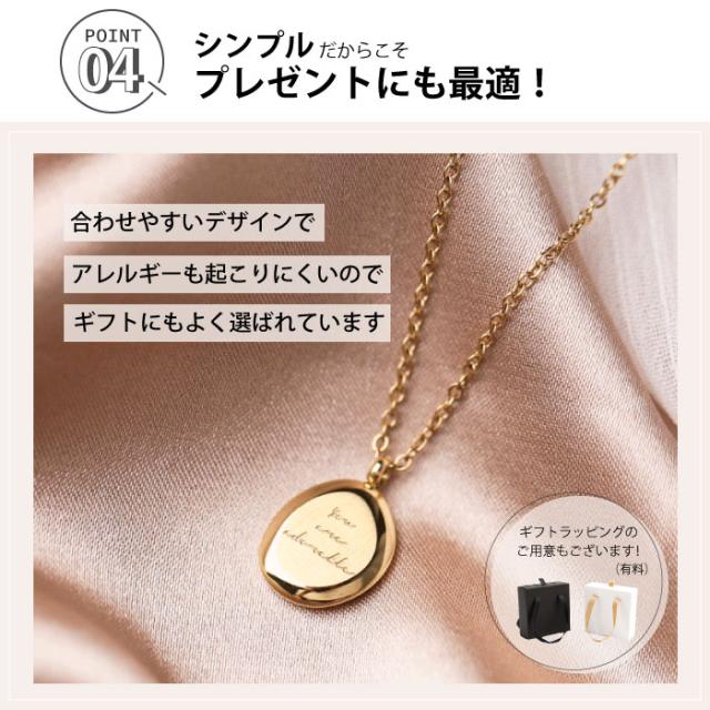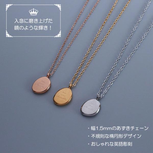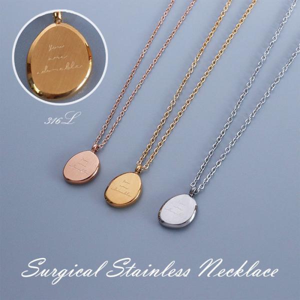 ステンレス ネックレス 楕円形 英語 あずき 小豆 金属アレルギー対応 k18コーティング サージカルステンレス ニッケルフリー
