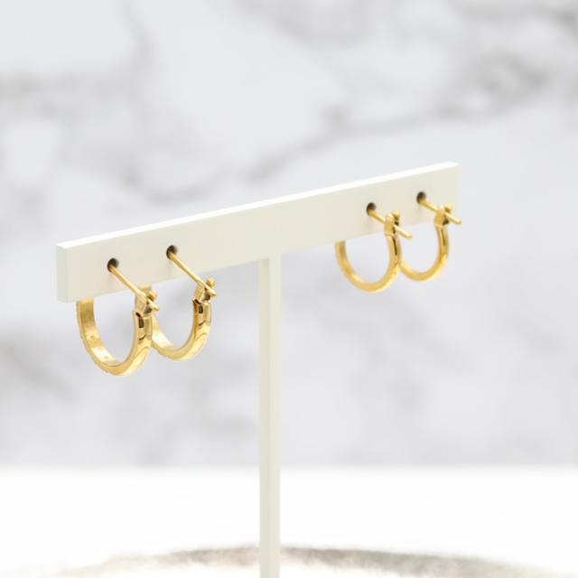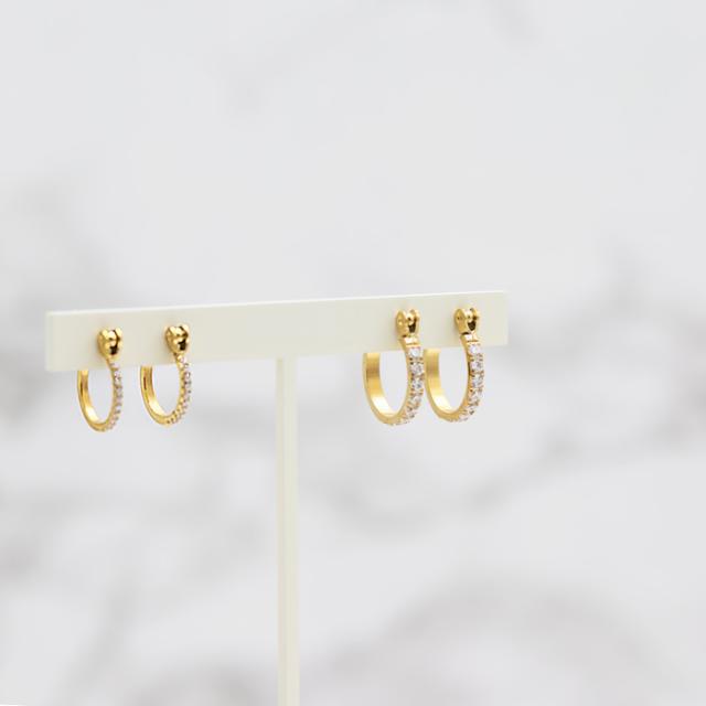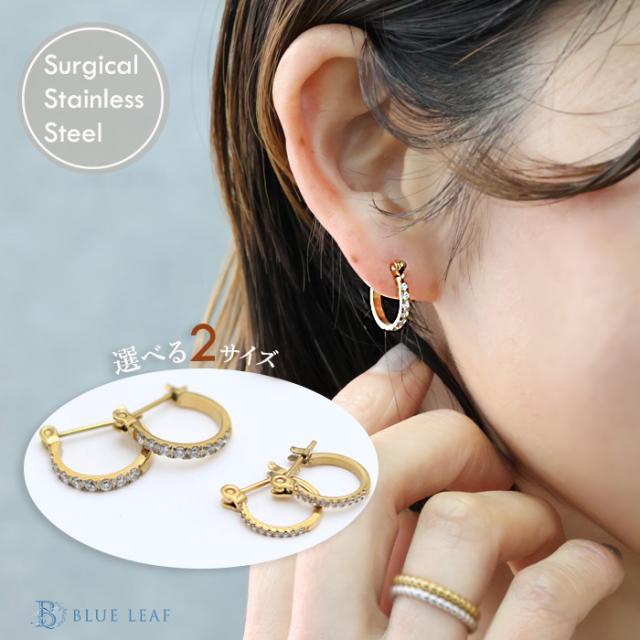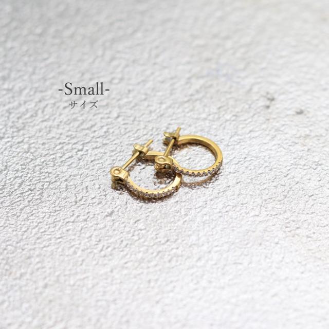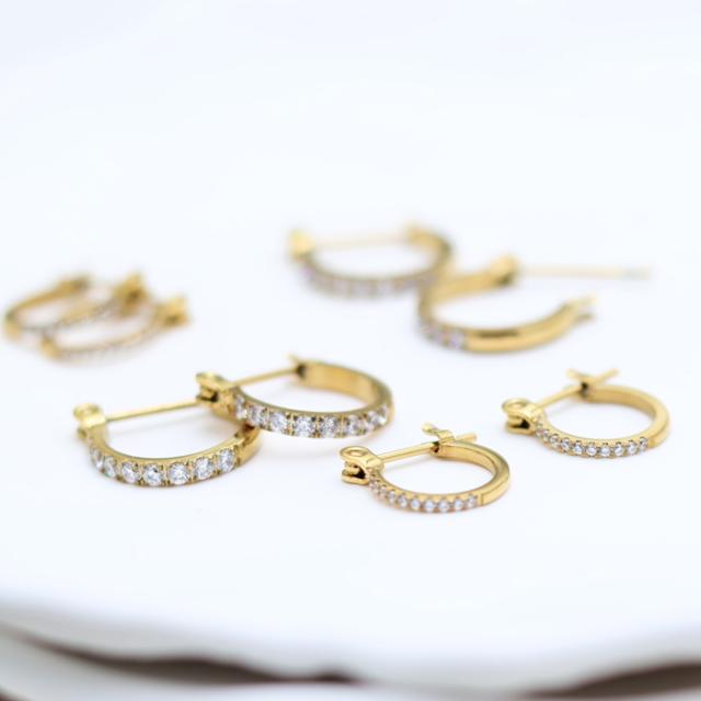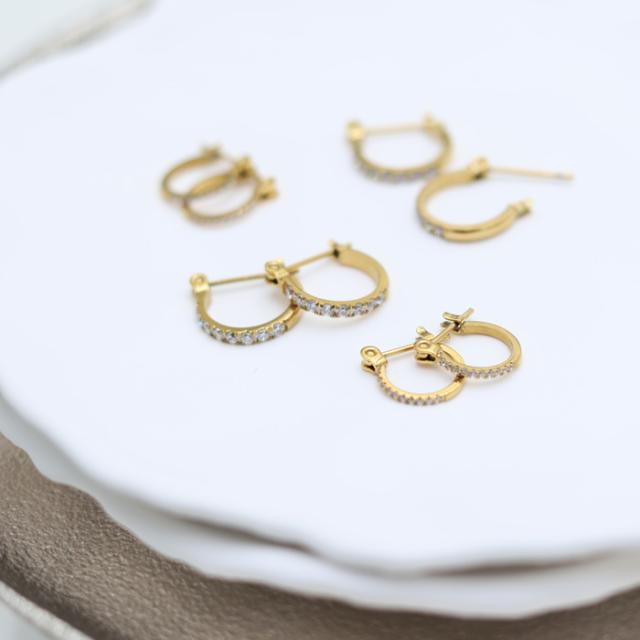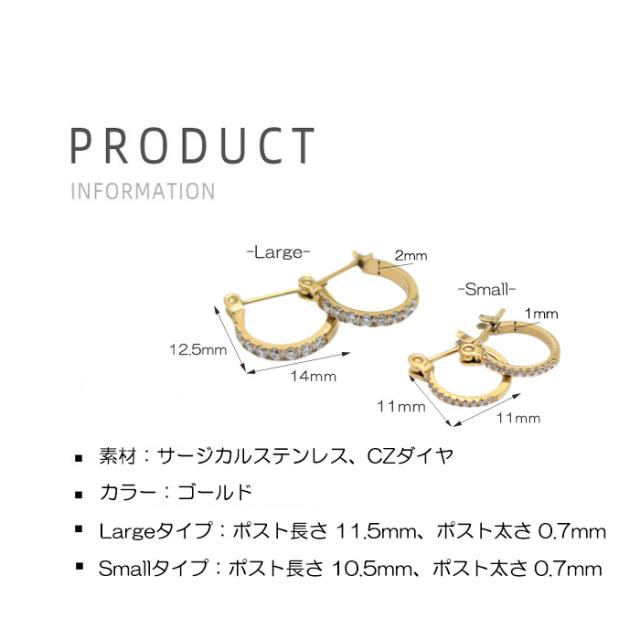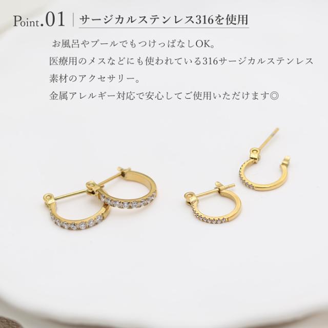 ピアス フープ サイズ 選べる ハーフ CZダイヤ キュービックジルコニア サージカルステンレス 18金コーティング 18K ゴールド ジュエリー つけっぱなし