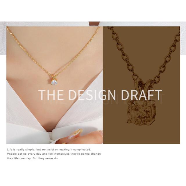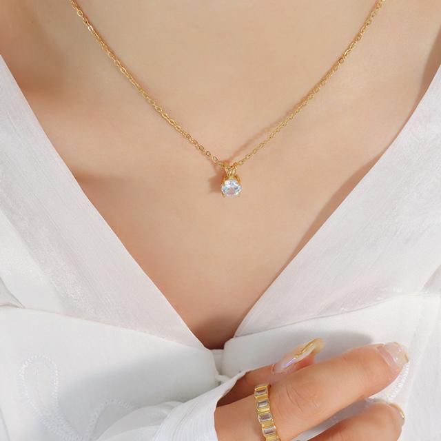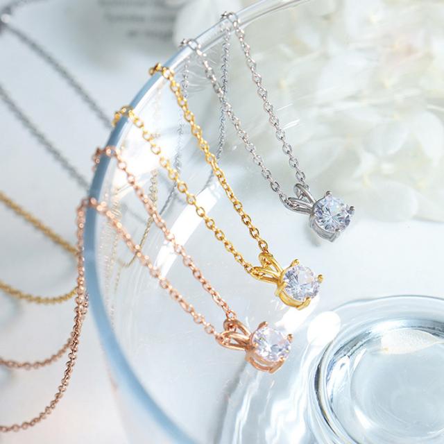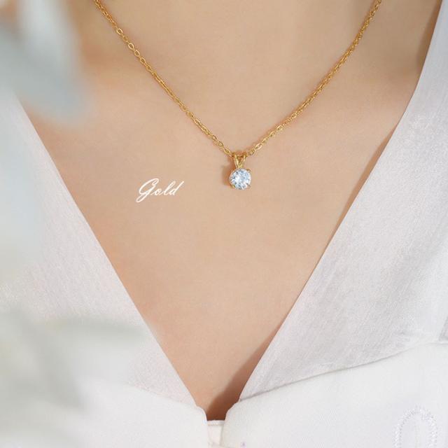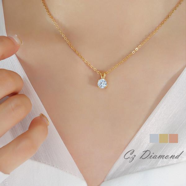 ステンレス ネックレス あずき チェーン キュービックジルコニア トップ 低アレルギー k18コーティング かわいい 上品 清楚 カジュアル ニッケルフリー