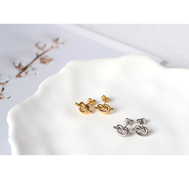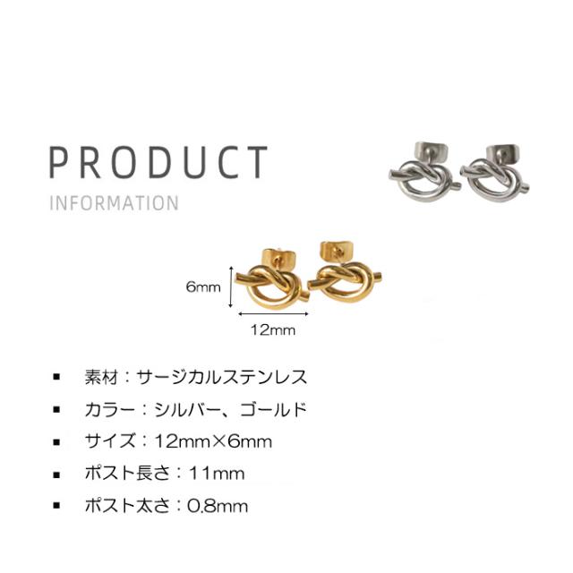 ピアス 結び ノット ひねり シルバー ゴールド サージカルステンレス ステンレス 18金コーティング 18K デザイン 低アレルギー お守り シンプル おしゃれ