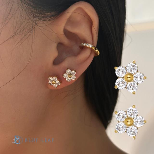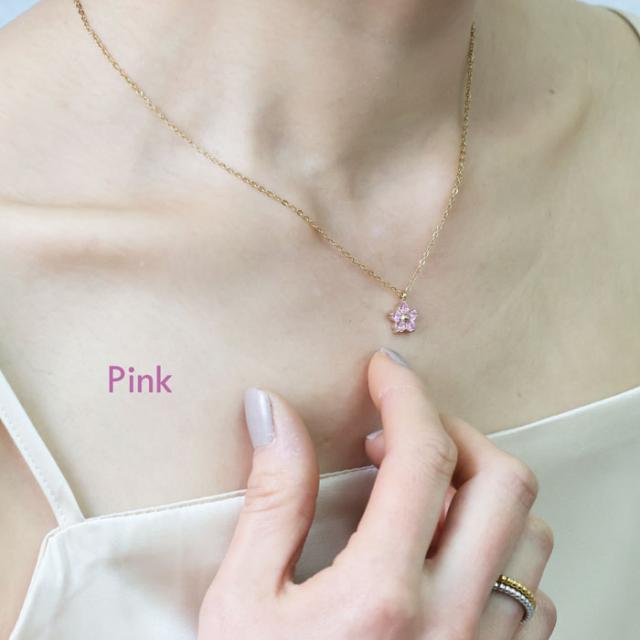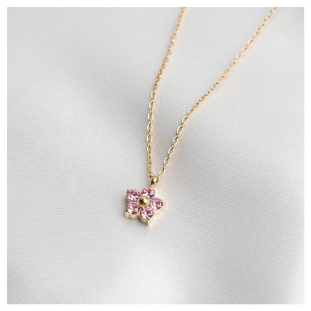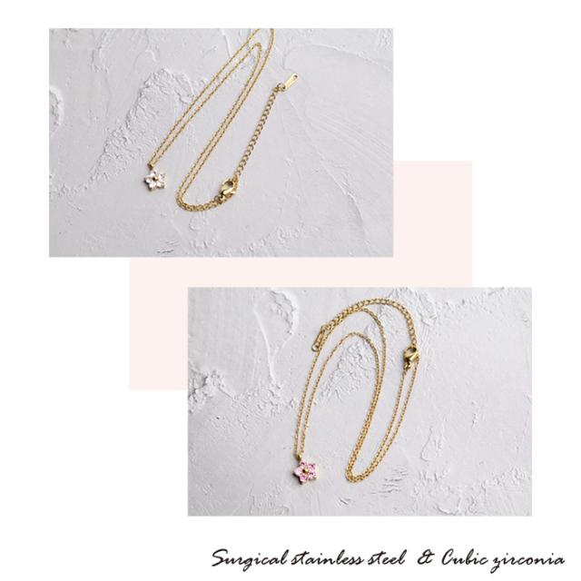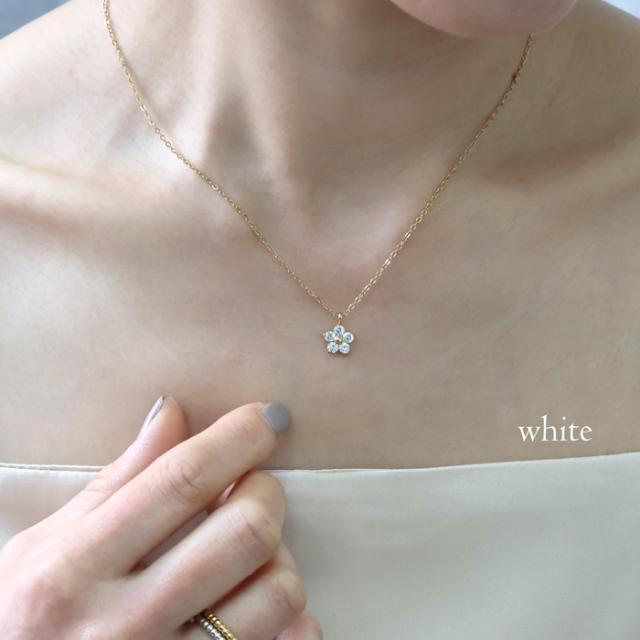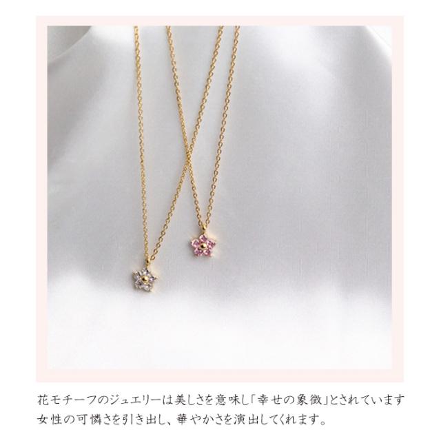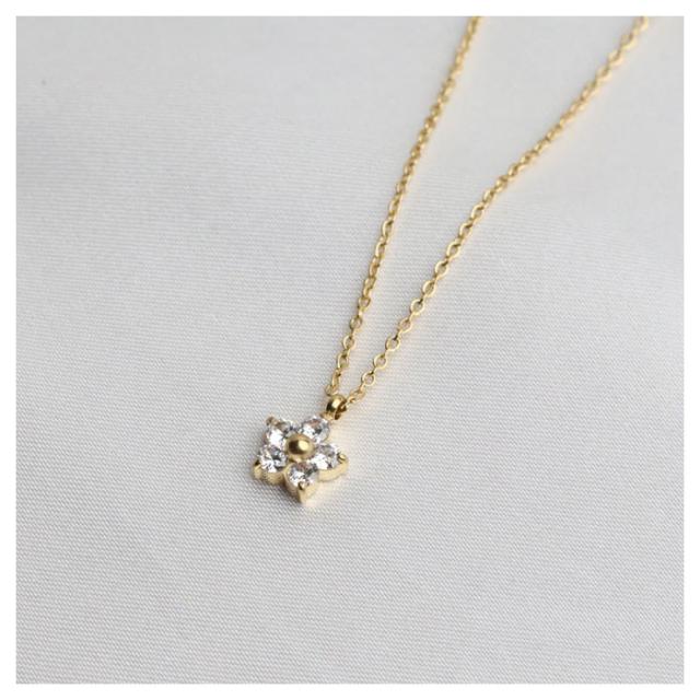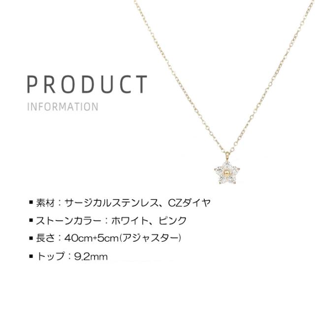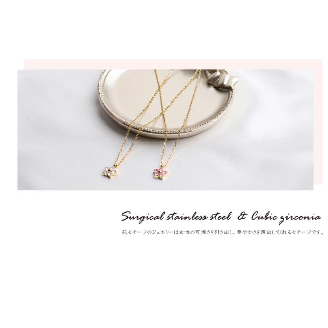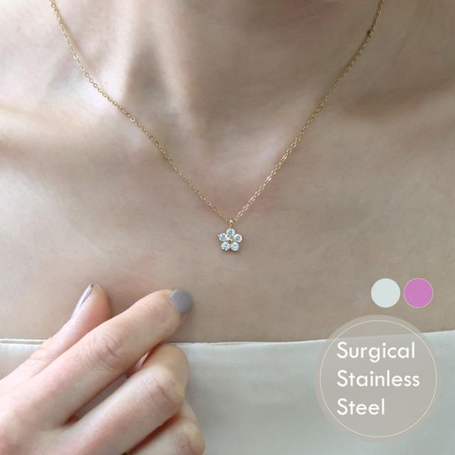 サージカルステンレス ステンレス CZダイヤ ネックレス 花 あずきチェーン 金属アレルギー対応 k18コーティング ペンダントトップ 40+5cm