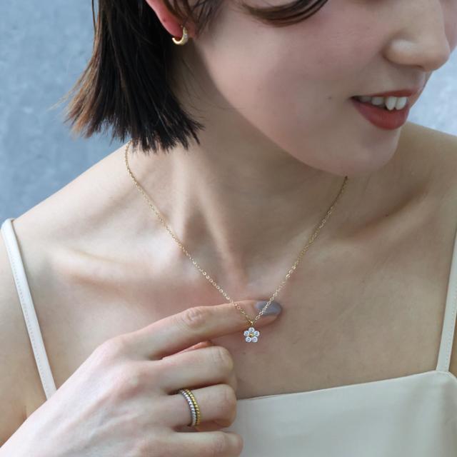 変色しにくい、変形しにくい、傷が付きにくい、 金属アレルギーに強いステンレスのネックレスです。 花モチーフのジュエリーは美しさを意味し「幸せの象徴」とされています。 女性の可憐さを引き出し、華やかさを演出してくれます。 長さ調整可能なアジャスターが付きで、装いに合わせて長さを変えることができます。 シンプルで使いやすいデザインとなっており、モードなイメージからカジュアルのアクセントまで幅広くお使い頂けますので日常使いからフォーマルな場面まで様々な場面で活躍してくれます。 |
