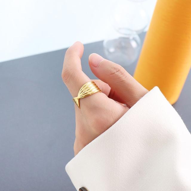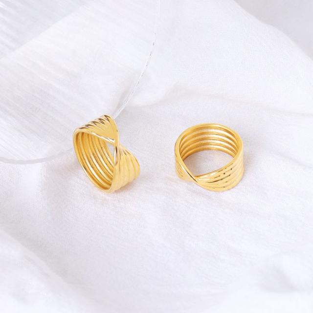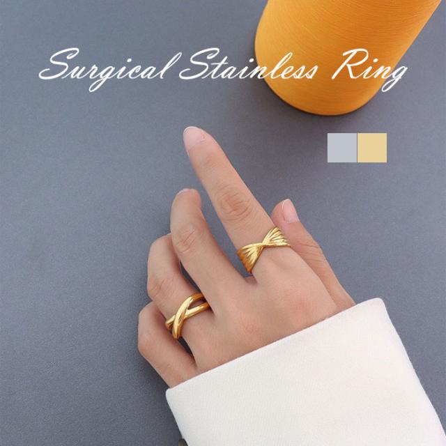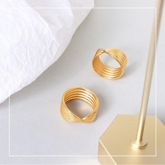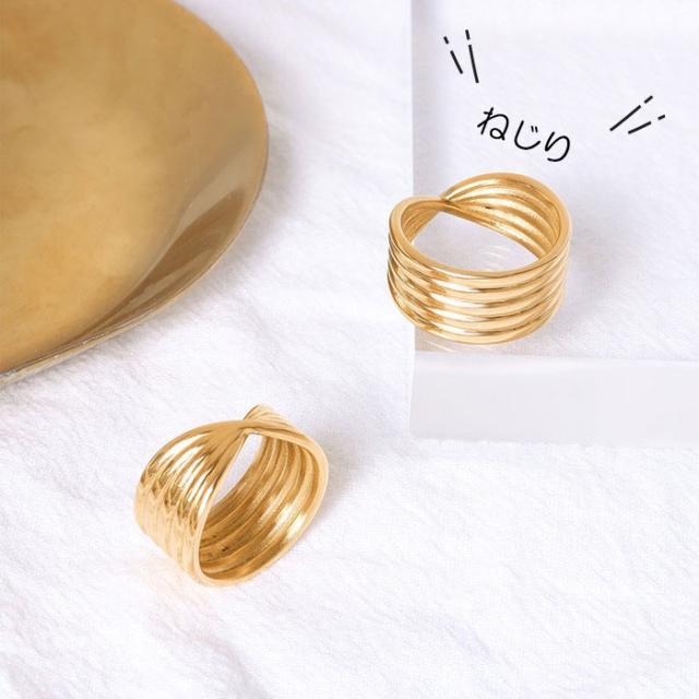 リング 指輪 ねじり 不規則 ステンレスリング k18コーティング 金属アレルギー対応 デザイン おしゃれ 大人可愛い シンプル