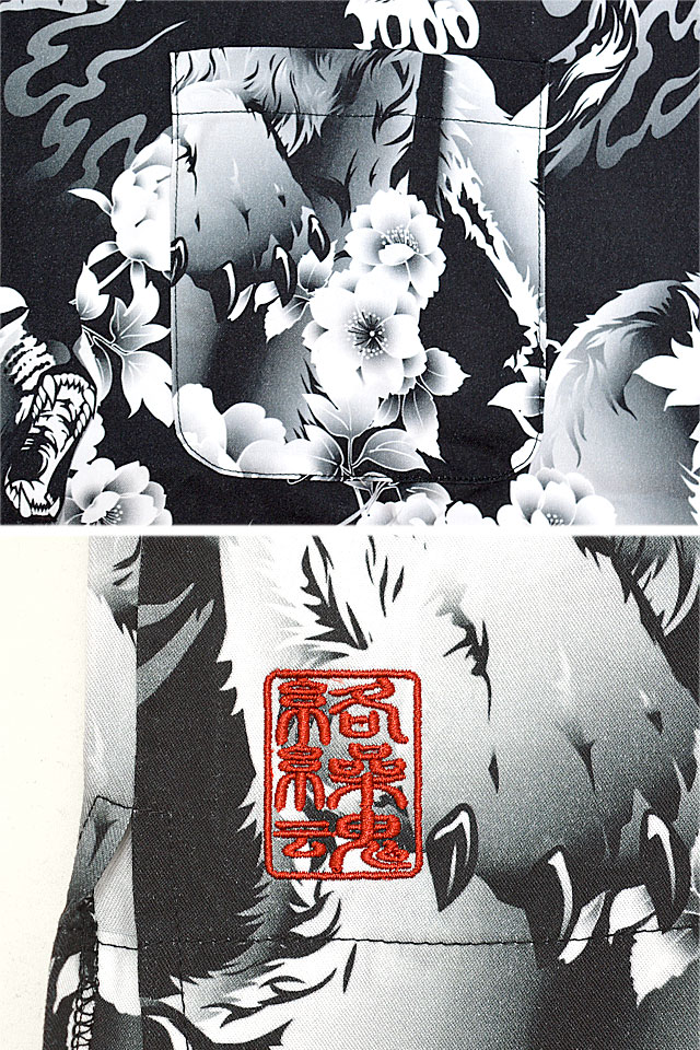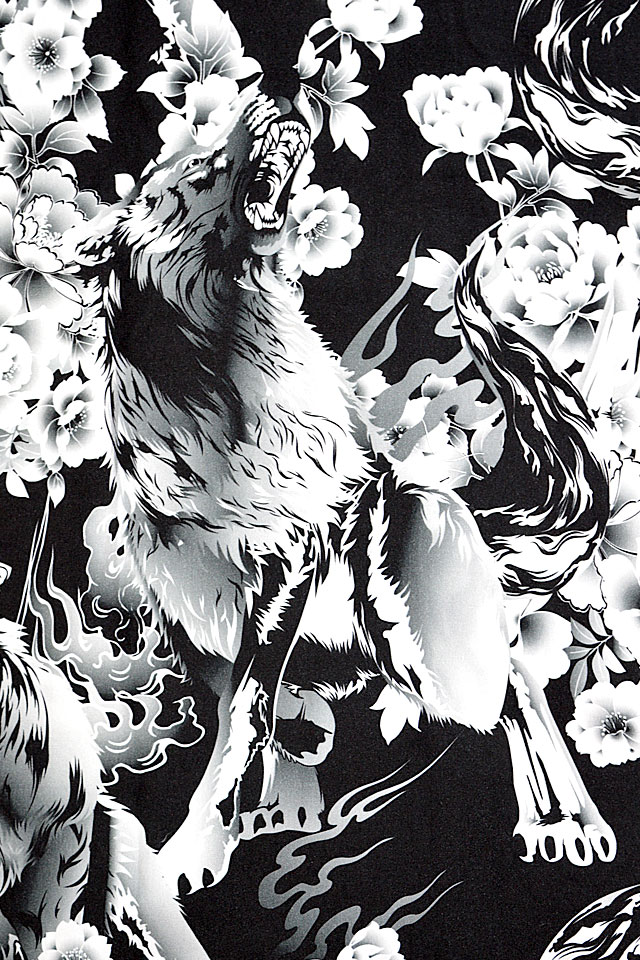 絡繰魂さんから「狼牡丹アロハシャツ(242883)」のご紹介です。 さらりとした軽い生地をボディーに採用した、夏にぴったりのアロハシャツが登場しました。 左胸にはポケットが縫い付けられています。 今回モチーフの主役に採用されたのは、近年人気を博している狼。 | |||||||||||||||||||||||||