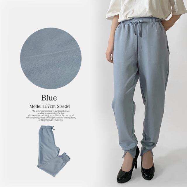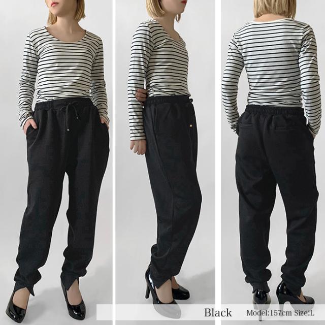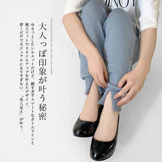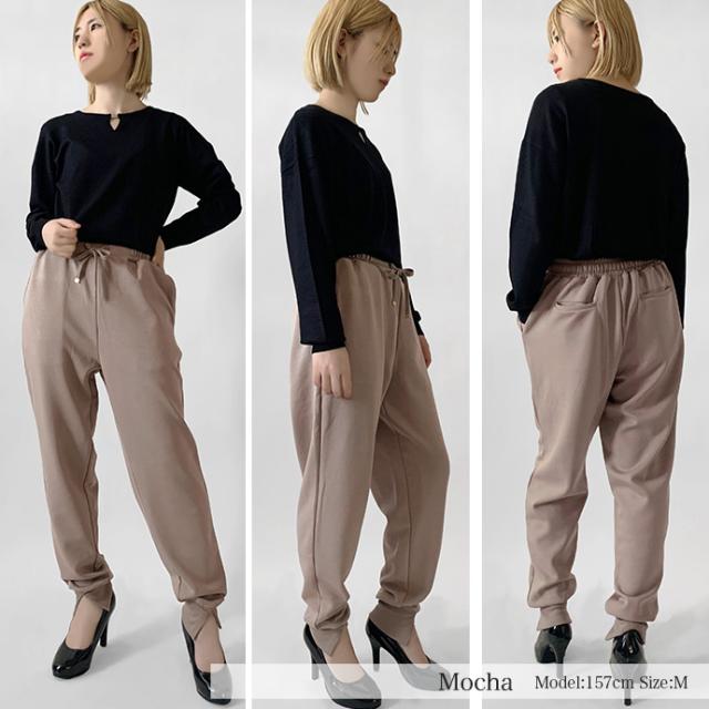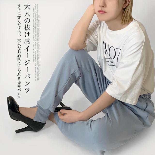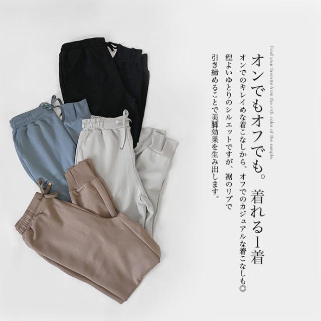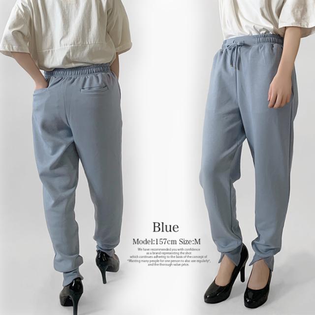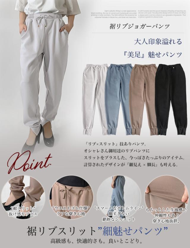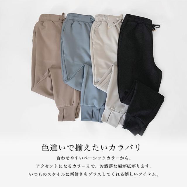ジョガーパンツ イージーパンツ ロングパンツ パンツ 総ゴム 裾スリット ソフトポンチ なめらか 裾リブ ウエストゴム ボトムス 美脚 脚長 レディース 無地 値下げ 送料無料