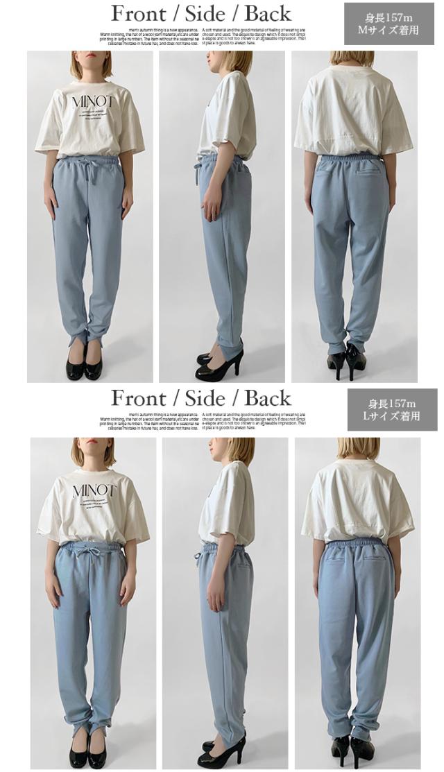 《L》ウエスト(ゴム)最小70〜最大94/ヒップ110/ワタリ34/股上34/股下74/裾幅12